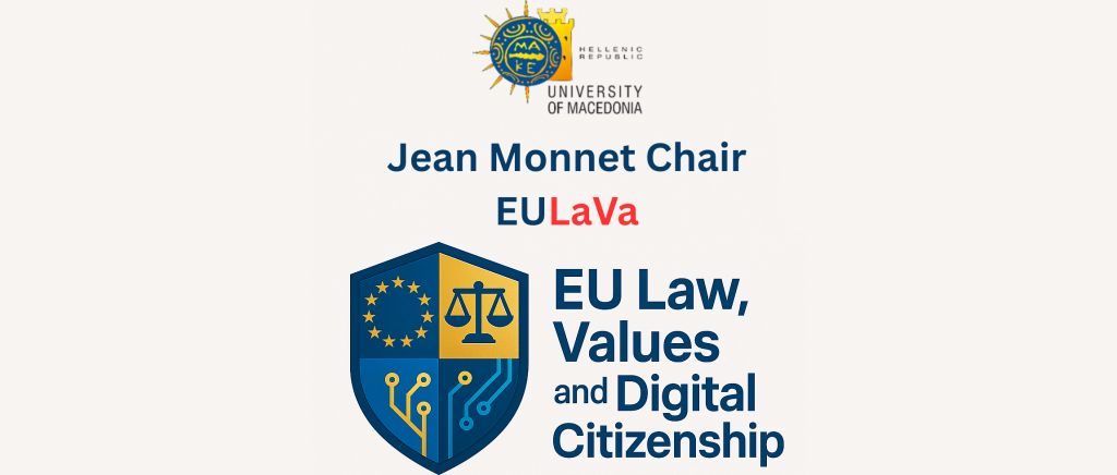 The Jean Monnet Chair “EU Law, Values, and Digital Citizenship” (EULaVa) at the University of Macedonia, coordinated by Professor Despoina Anagnostopoulou, aims to enhance the study of EU law, digital governance, and fundamental rights. The Chair focuses on expanding EU studies by introducing new short courses, updating curricula, and integrating digital citizenship and media literacy into academic programs. It seeks to bridge the gap between academia, civil society, and policymakers by organizing conferences, roundtables, and guest lectures, fostering dialogue on AI regulation, disinformation, and democratic resilience. Additionally, the initiative promotes research, public awareness, and interdisciplinary collaboration, ensuring a long-term impact on education, policy, and civic engagement in a digitally evolving European society.